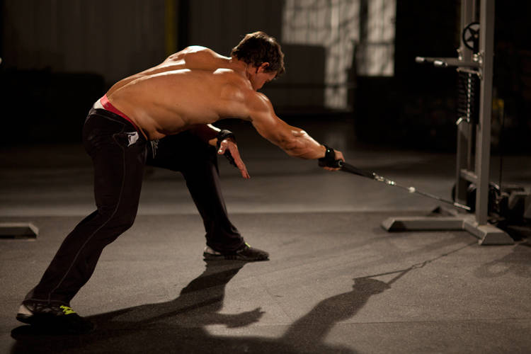 - After selecting the correct weight, stand a couple feet back with a wide-split stance. Your arm should be extended and your shoulder forward. This will be your starting position.